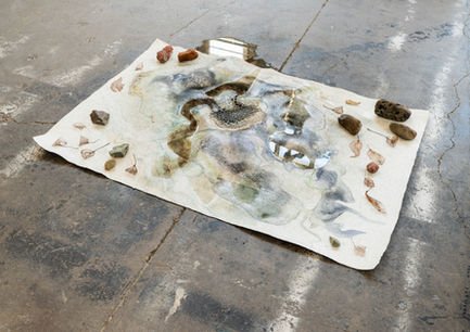The pigment and water drip through these layers of memory and land on a map of the former lake, refilling it drop by drop.