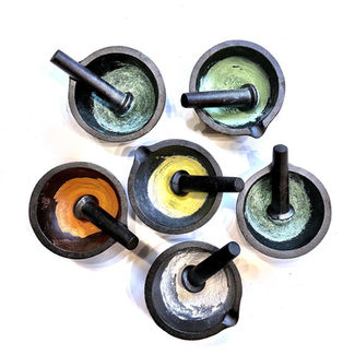 The pigments are often made in community pigment-making workshops. No special skills are needed to make pigments and these workshops are open to all. The process is playful, exploratory, and allows for free-flowing and guided conversations about memory, inheritance, identity, and place.